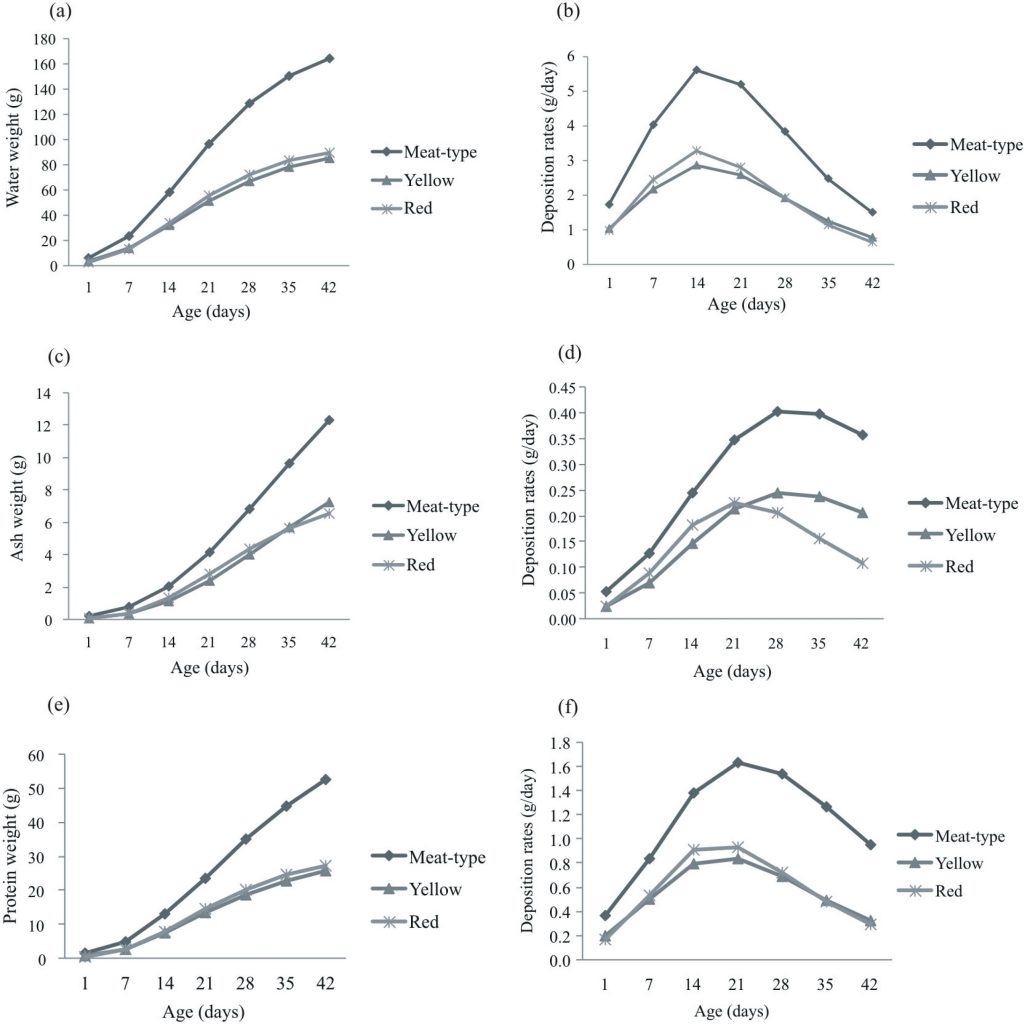 Estimation of growth parameters of body weight and body nutrient deposition in males and females of meat- and laying-type quail using the Gompertz model