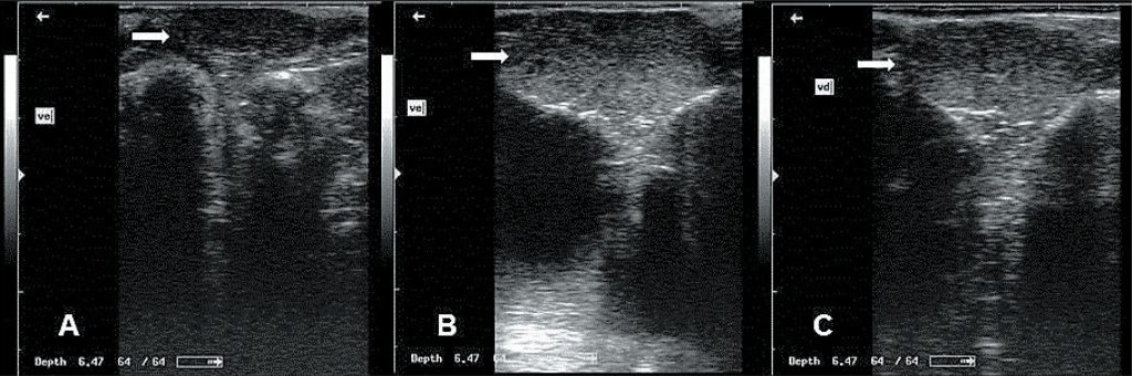 This work aimed to investigate the relationship between echogenicity, testicular biometry, and accessory gland biometry and evaluate the echogenicity pattern of these structures in Santa Ines rams. Fifty-four healthy Santa Ines sheep were classified into three age groups: group 1 – 3 to 5 months (pre-pubertal); group 2 – 7 to 11 months (pubertal); and group 3 – 13 to 28 months (sexually mature). The averages of testicular biometry and bulbourethral gland biometry were different among age groups. The testicular parenchyma was homogeneous with low echogenicity (pre-pubertal group) and medium echogenicity (pubertal and sexually mature groups), suggesting that testicular echogenicity can be a helpful tool to identify the start of puberty. The accessory glands were heterogeneous with low echogenicity in all age groups. Correlations were high between weight, biometry of testis and of bulbourethral gland and echogenicity of the accessory glands, indicating that sexually mature rams with higher body development have larger testicles and larger glands. We recommend the use of testicular biometry as a complementary evaluation of the reproductive efficiency of Santa Ines rams. The average values of echogenicity and the biometry of accessory glands are important parameters to assist the selection of breeding rams.