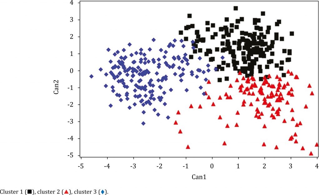 We aimed to determine the relationship of milk yield, milk composition, and somatic cell score (SCS) with functional traits (lameness score, udder cleanliness score, udder depth, and teat end hyperkeratosis score) and physiological status (parity and days in milk (DIM) of cows housed in compost bedded pack barn system (CBP) using multivariate analysis. Data were collected in September and October of 2017 and evaluated using factor and cluster analysis. Four factors were formed, with the first factor showing the traits responsible for altering the lactose content in milk, the second factor comprising the effect of DIM, the third factor representing the teat end hyperkeratosis score, and the fourth factor demonstrating the udder cleanliness. The cluster analysis formed three clusters. Clusters 2 and 3 differed for protein and lactose content, SCS, parity, DIM, lameness score, and udder depth. Cluster 1 differed from the others, especially due to the high milk yield. Cow conformation traits and physiological status affected milk yield and composition in CBP. There is an association between udder depth, parity, and SCS with negative impact on lactose content. Parity is also associated with higher milk yield and teat end hyperkeratosis score. Cows with lower lameness score presented dirtier udders due to increased movements on the feed parlor and water troughs areas. Special attention to the improvement of the udder conformation traits, as well as management practices that reduce hyperkeratosis, are necessary to keep high yielding, healthy, and cows with higher longevity. The cleanliness in the feed parlor and water troughs area is very important to preserve milk quality and healthy cows.