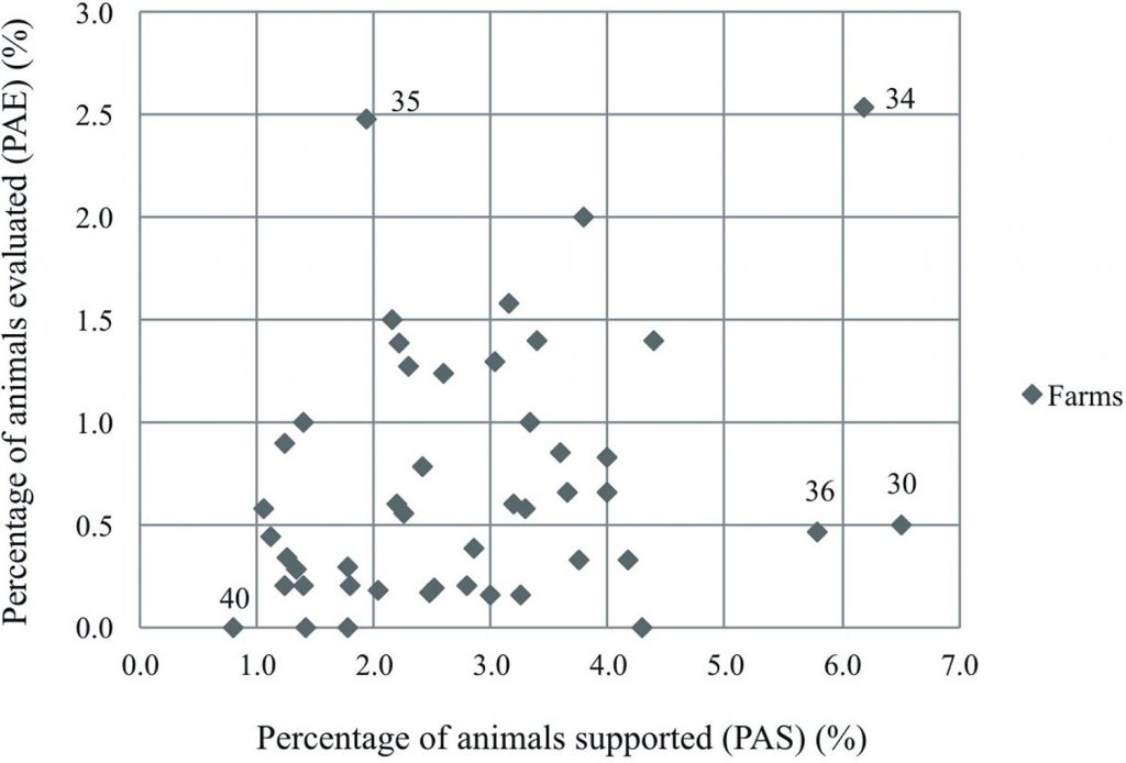 The objective of this study was to describe the housing system in the hospital pens on growing and finishing (GF) pig farms. This work was developed by using a questionnaire and was conducted between January and April, 2016. Forty-four GF commercial farms (a total of 41,111 animals) were involved, seeking to raise issues concerning the facilities of the hospital pens, environment, management, feeding and the reasons for transferring the animals to these accommodations. About 98% of the evaluated farms had, at least, one hospital pen. Most of these farms presented a percentage of animals evaluated (PAE) in the infirmary, of less than 1.5% of the total capacity of the animal housing on the farm. In 93.48% of the farms, the criterion used to transfer the animals to the infirmaries was when they were identified as “impaired, hurt, suffering”. In 47.83% of the cases, there were no differences between the hospital and common pens regarding the general management of the animals. The facilities and environment characteristics were similar in almost all hospital pens. Respiratory problems were the main reason for transferring pigs from the common to hospital pens. Under the conditions of this study, sufficient hospital pens exist on farms and overcrowding or competition for resources among pigs are avoided. However, there is no established standard among respondents about where to place the recovered animals.