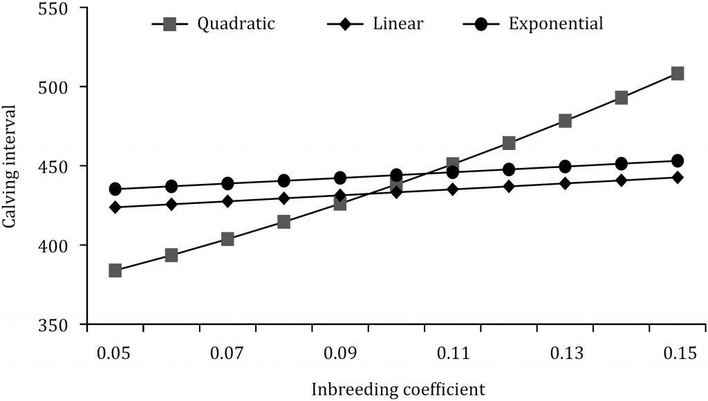 Palavras-chave: calving interval; inbreeding coefficient; linear models; non linear models
