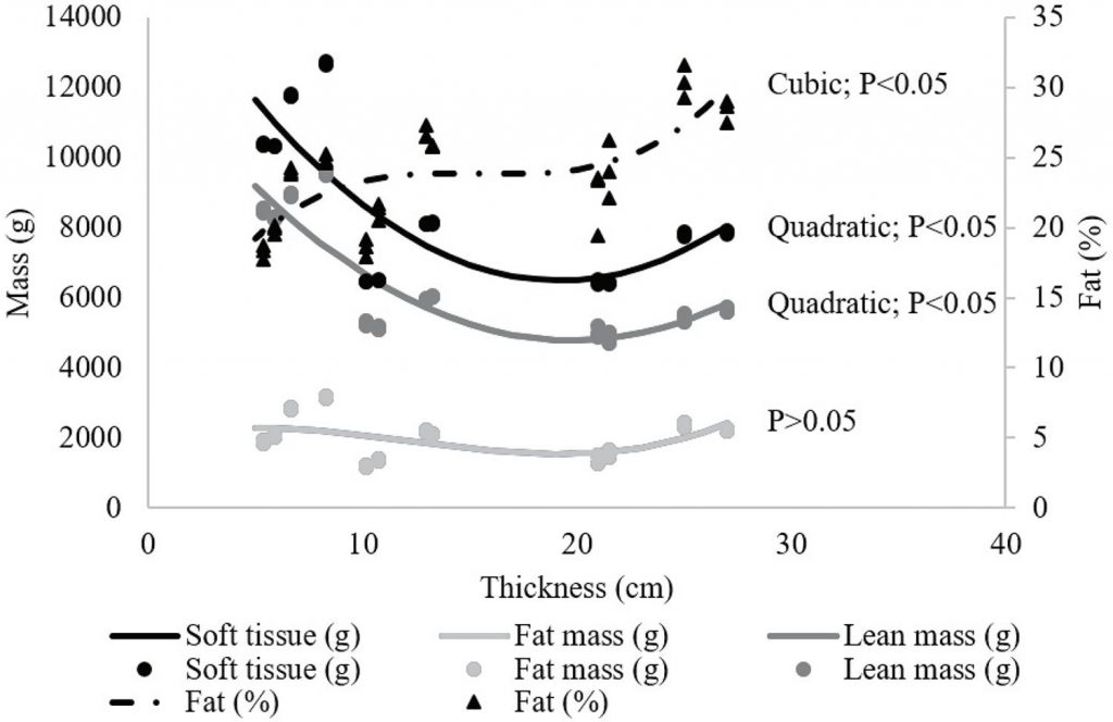 Precise body composition measurements are essential in animal nutrition studies because the impact of treatments is evaluated based on changes in body weight and composition. Various indirect techniques for animal compositional evaluation have been developed and evaluated for applicability in animal nutrition studies. A fast, accurate, minimally invasive method that requires little input is considered the ideal for providing information about the animal. Measurements obtained by dual-energy x-ray absorptiometry (DXA) are highly correlated with those obtained by chemical analysis and dissection. The algorithms of DXA software partition the six chemical components of the body (lipids, water, proteins, carbohydrates, non-bone mineral, and bone mineral) into three compartments (total body mineral content, fat mass, and lean mass). Questions have been raised about how this partitioning affects the precision of the DXA method. In addition, the relationship between the DXA measurements and dissected carcass tissues is nonrepresentational of the relationship between DXA and chemical analysis. Furthermore, since DXA devices and their software were developed primarily for human medicine, they may not be fully adequate for animal evaluation. Calibration is required to obtain true values. The DXA method has some advantages and disadvantages that should be identified and controlled before calibration. Nonetheless, DXA is a valuable tool that provides precise, repeatable body composition measurements of live monogastric animals and their carcasses.